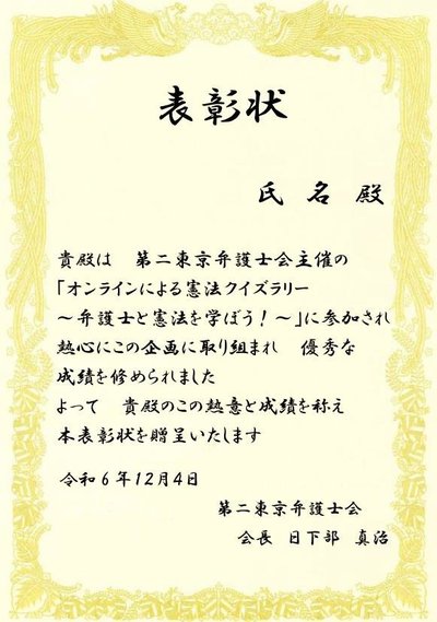 2024年12月4日の15時30分より、「憲法クイズラリー」を実施しました。東京近郊に限らず遠方のみなさんにも参加していただけるよう、オンラインにより実施しました。